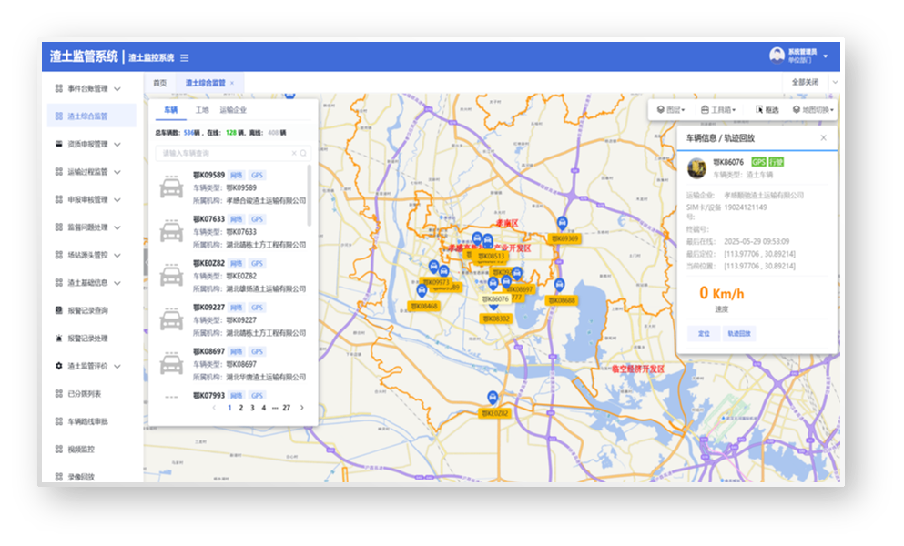 孝感市城市運行管理服務平臺智慧渣土監(jiān)管系統(tǒng)