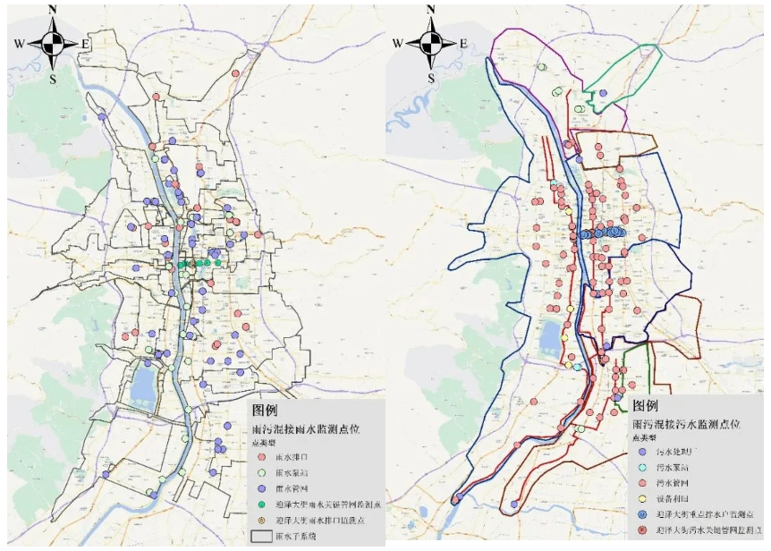 結合太原市現狀雨水系統分區、污水系統分區、受納水體、地形地勢現狀,對太原市47個雨水系統關鍵排口、區域泵站、核心管網匯聚點以及太原市8個污水系統的污水處理廠、污水泵站、核心管網匯聚點、典型排水戶進行監測。通過物聯監測體系為管網隱患溯源、防澇聯合調度提供完善的數據支撐。