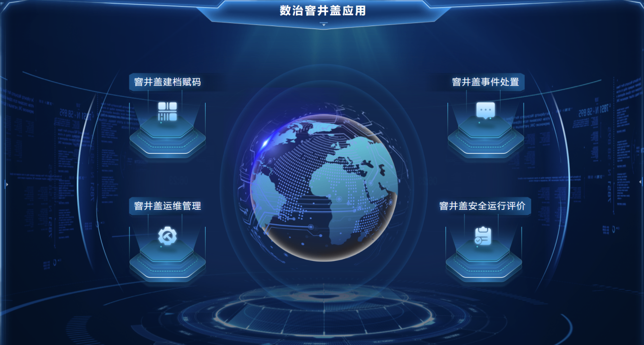 窨井蓋全周期數字化管理系統應用主要包括窨井蓋建檔賦碼、運維管理、事件處置、安全運行評價四個應用場景及一個數據駕駛艙。