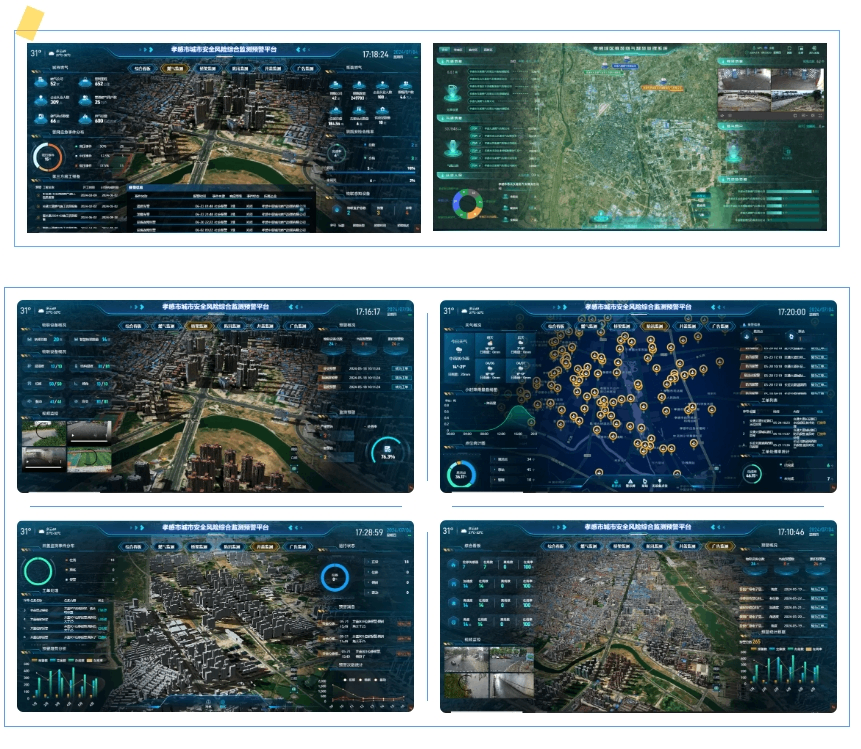 結合孝感市城市管理實際需要,行業應用系統方面建有智慧市政、智慧園林、綜合執法、防汛排澇、智慧燃氣、渣土監管、戶外廣告監測、橋梁監測等行業應用子系統,并對接集成燃氣監管、市容環衛和智慧停車等子系統。