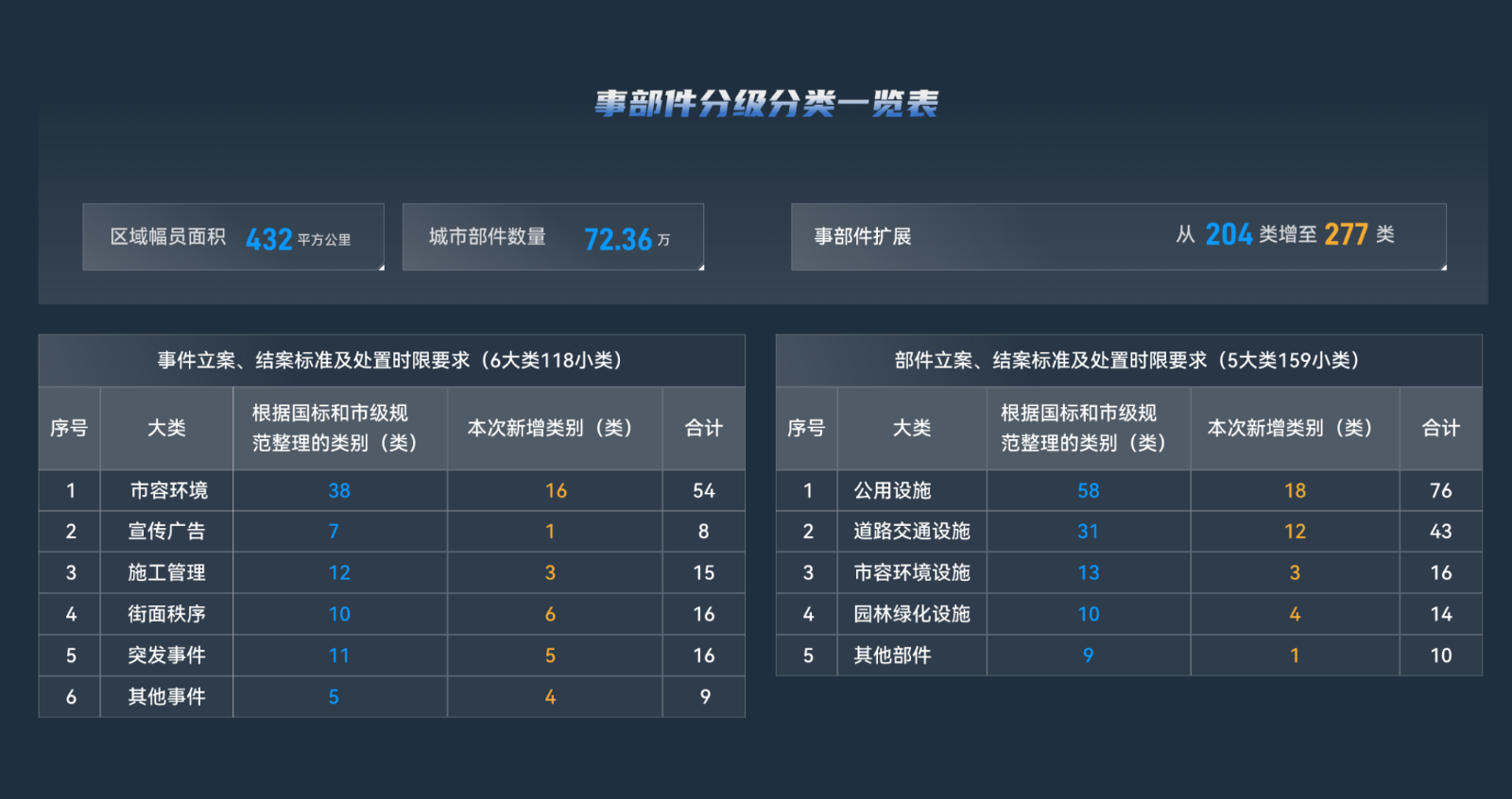 一是推進治理事項標準化梳理。積極落實“一網統管”協同共治任務,探索事項目錄清單,擴充城市綜合管理領域,共梳理城管、應急、衛健委等18個部門共277個事項,明確管理對象、管理主體、責任邊界和標準作業流程。