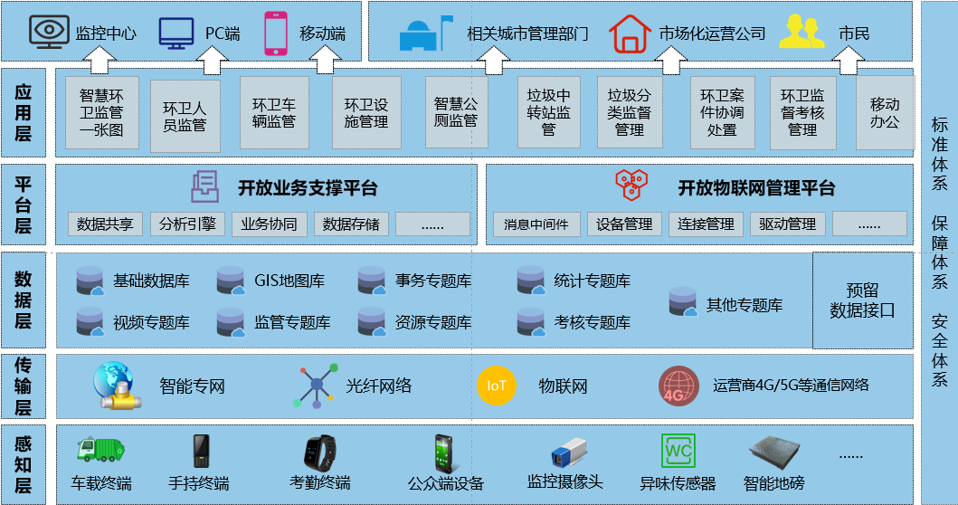 傳統的環衛管理模式都是通過先發現問題再去處理解決問題,很多問題并不能從根本上減少發生的頻率,通過智慧環衛,首先對于市民反映的問題如公廁異味、環衛車輛的拋灑,可以追蹤溯源,找到相應的責任單位,按照規定進行處置并且記錄在案,防治此類事件再次發生,其次擁有強大的預警機制功能,多余在監管服務平臺上多次發生的事件,采取智能判斷和人工判斷相結合的方式,在很多環衛問題尚未出現前進行處置,最后平臺搭建便捷市民的服務模塊,市民對于日常生活中發現的環衛相關的問題進行平臺反饋,采用“防微杜漸”更為科學的管理模式,配合現有的管理機制,可以大大減少甚至可以有效遏制很多問題的發生,提高管理部門對城市環境衛生問題的應急響應能力,有效應對各類突發事件,從而最終可以提高環衛業務的綜合管理水平。