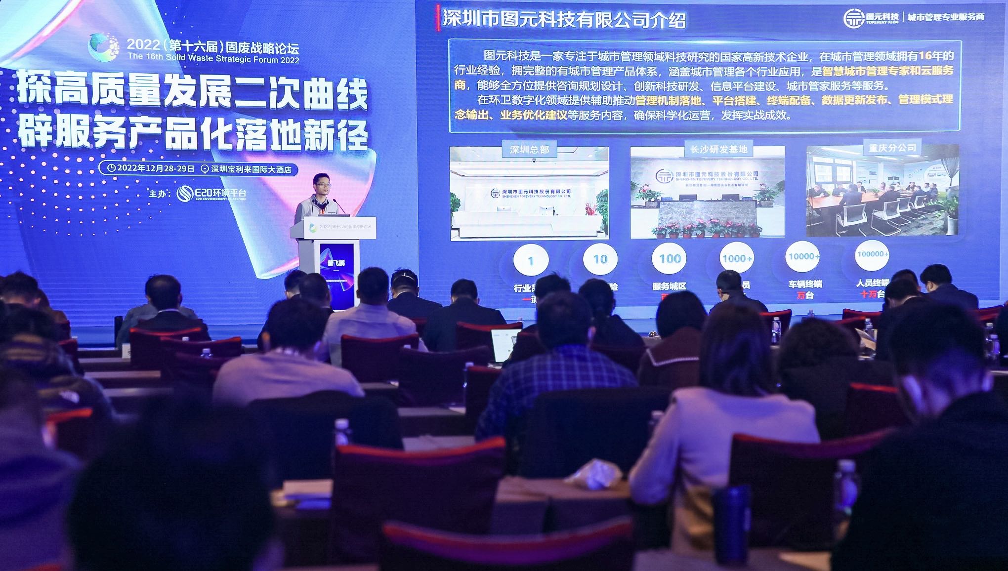 2022年12月28日-29日,第十六屆固廢戰(zhàn)略論壇在深圳順利舉行。此次論壇以“談高質(zhì)量發(fā)展二次曲線,辟服務(wù)產(chǎn)品化落地新徑”為主題,邀請(qǐng)了百余位行業(yè)內(nèi)領(lǐng)域的知名專家,共話理論與實(shí)踐創(chuàng)新。圖元科技受邀參加并在大會(huì)“環(huán)衛(wèi)行業(yè)服務(wù)產(chǎn)品化落地”環(huán)節(jié)中發(fā)表主題演講。