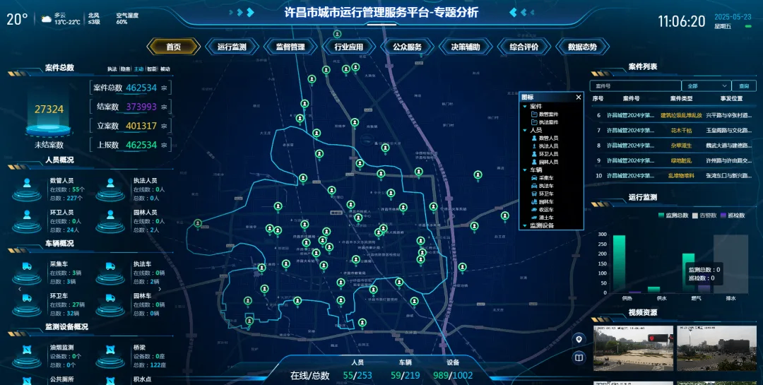 許昌市城市運行管理服務平臺自2024年6月30日建成并投入試運行以來,累計收集處理各類城市管理問題43余萬件,有效解決了城市管理痛點難點問題,顯著提升了城市科學化、精細化、智能化治理水平。